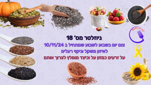 ניוזלטר מספר 18 ממתכון לזרעים טחונים מזון על המשמש כנוגד דלקות על ידי חיזוק הגוף, זרעי פשתן צ'יה שומשום שחור גרעיני דלעת וחמניות וכן גוג'י